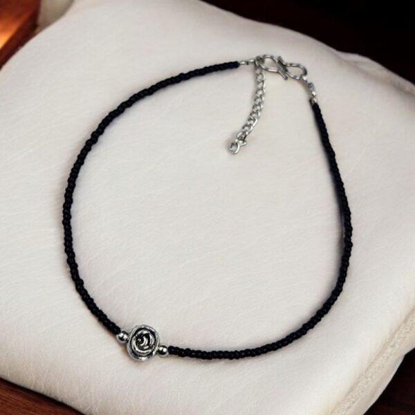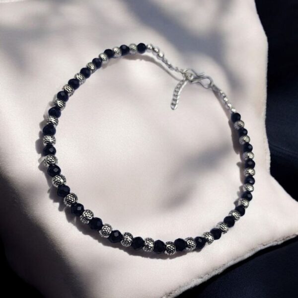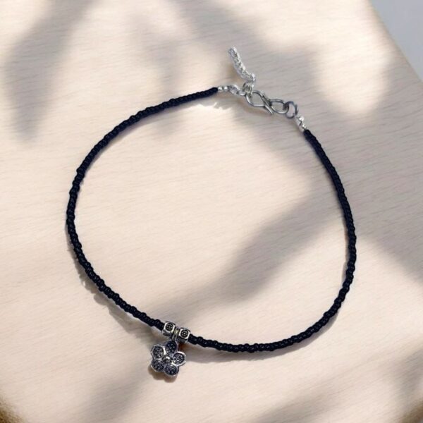 Elegant Flower Charm Anklet with Silver and Perfect Black Glass Beads