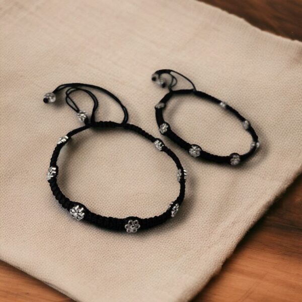 Elegant Black Beads Flower Anklet in Best Silver Replica Design