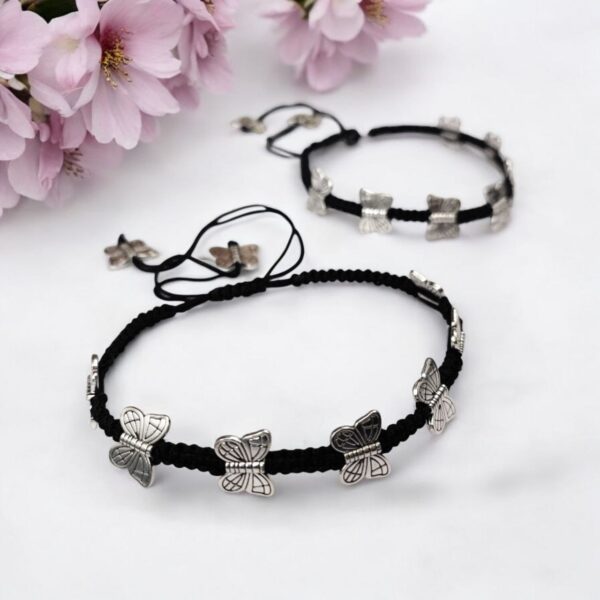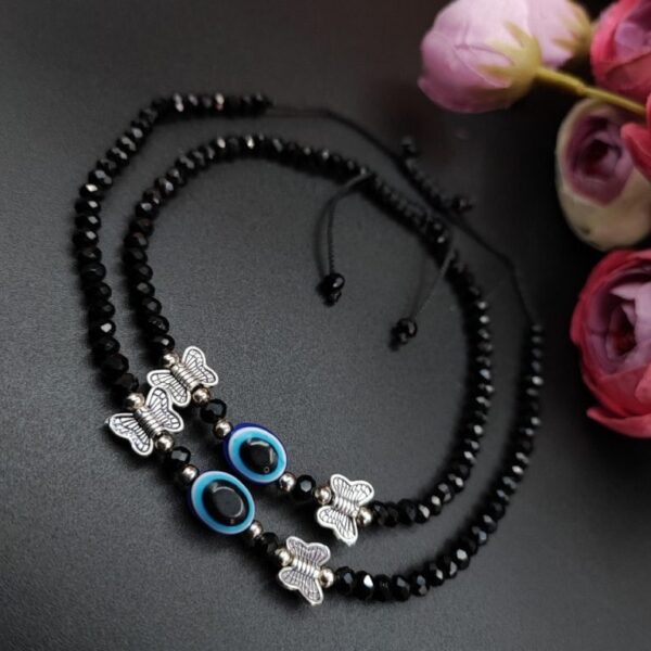 Oxidised Butterfly Anklets with Best Black Crystal Beads for Girls
