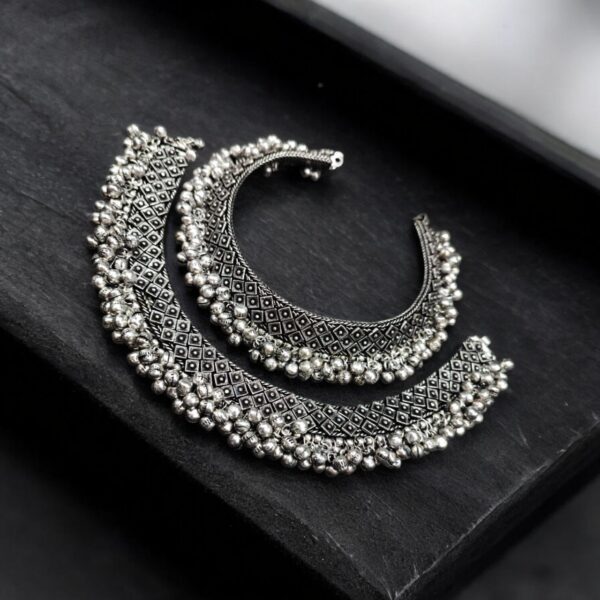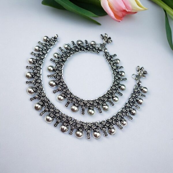 Oxidized Silver Plated Brass Anklet | Traditional Payal Jewelry for Women