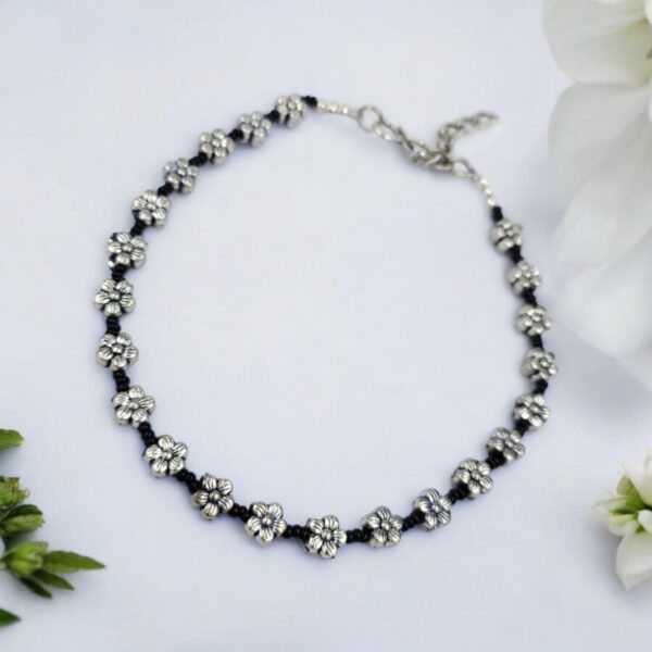 German Silver Flower Beads Anklets - Adjustable Size Anklet