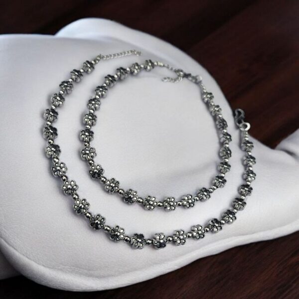Premium Floral Silver Anklet with S-Lock, Perfect for Everyday Use