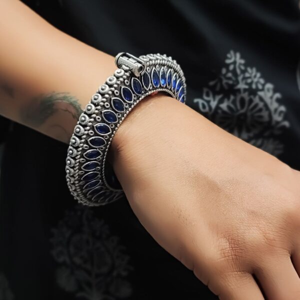 Antique Silver Bracelet | Oxidized Kada with Stone Work | Best Openable Bangle