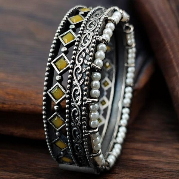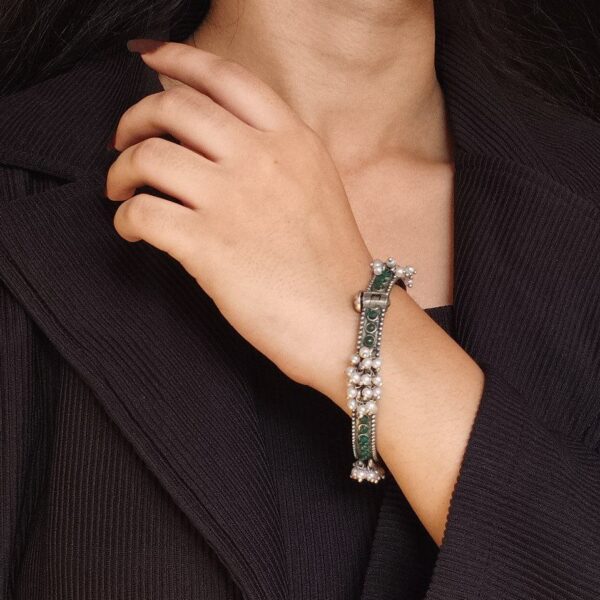 Antique Look Best Silver Replica Bangle | Openable Stone & Pearl Work Ethnic Jewelry