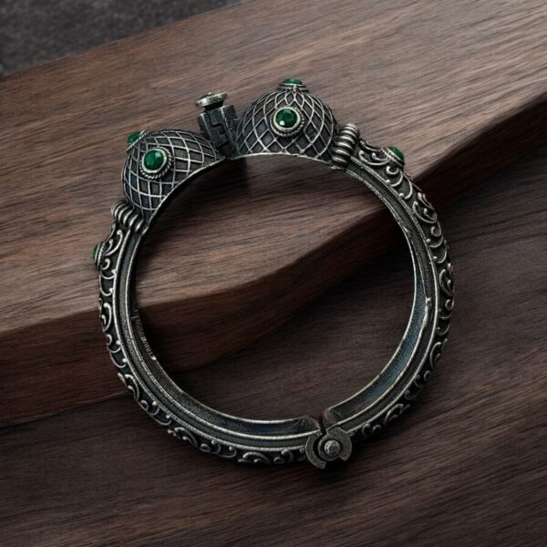 Antique Finish Silver Replica Openable Bangle | Beautiful Design with Stone Work Jewelry