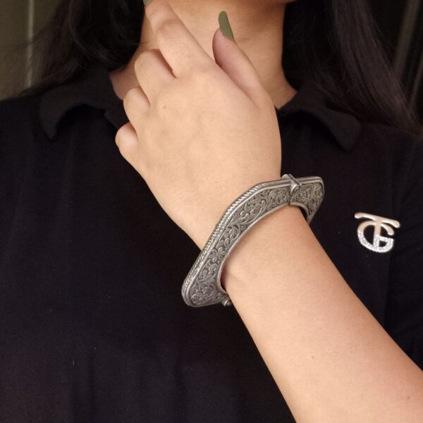 Antique Look Oxidised Kada Bracelet For Girls | Best Silver Replica Bangle