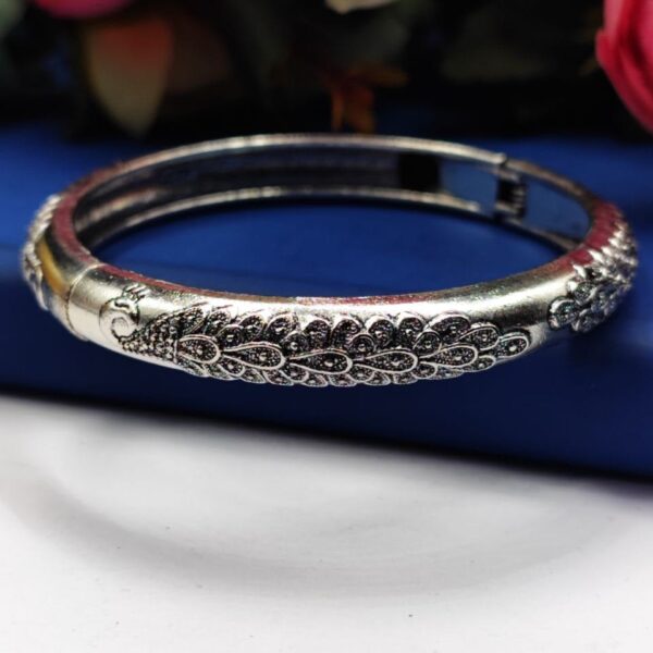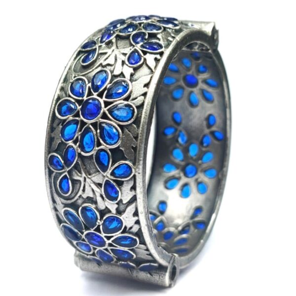 Handcrafted Unique Design Oxidized Openable Bangle | Stone Work Silver Replica Jewelry