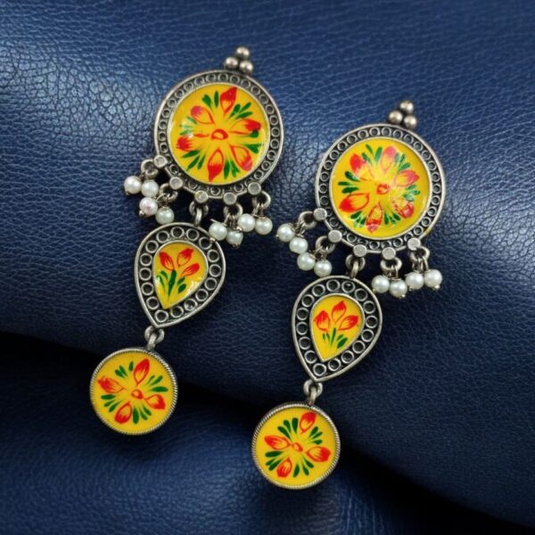Traditional Indian Art Painting Earrings | Best Hand-Paint Oxidized Silver Replica Earring