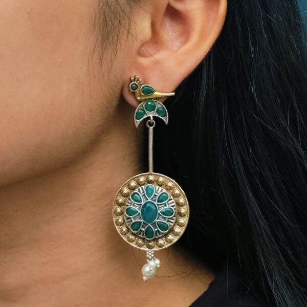 Traditional Ethnic Two-Tone Earrings | Pearl & Stone Antique Peacock Inspired Amazing Jewelry