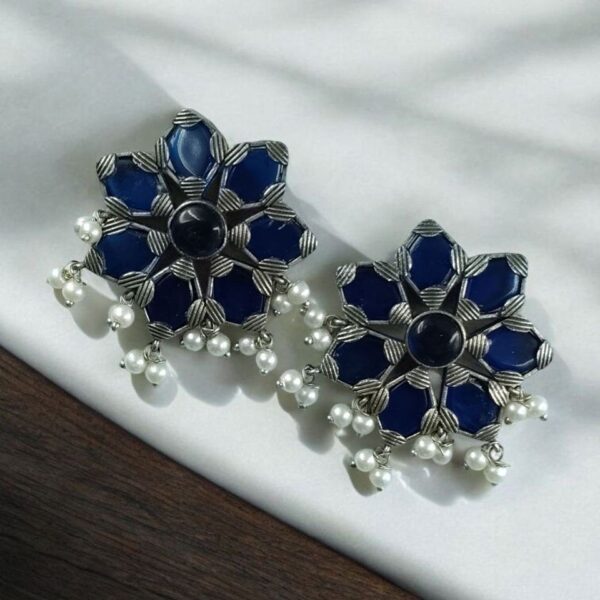 Beautiful Oxidized Flower Earring | Silver Replica Ethnic Stone Work Dangler Jewelry for Girls