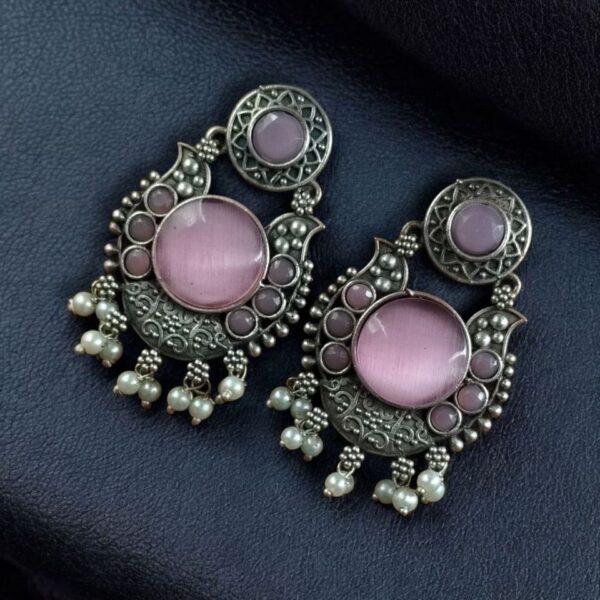 Beautiful Floral Art Earrings | Traditional Oxidized Silver Plated Pearl Work & Monalisa Stone Jewelry