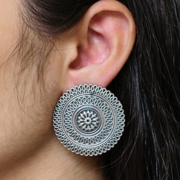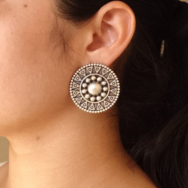 Beautiful Oxidized Silver Replica Round Stud Earrings | Handmade Best Jewelry