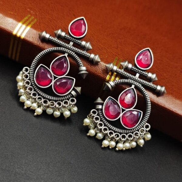 Designer Two-Tone Oxidized Earrings | Monalisa Stone Dangler Silver Replica Best Trendy Jewelry