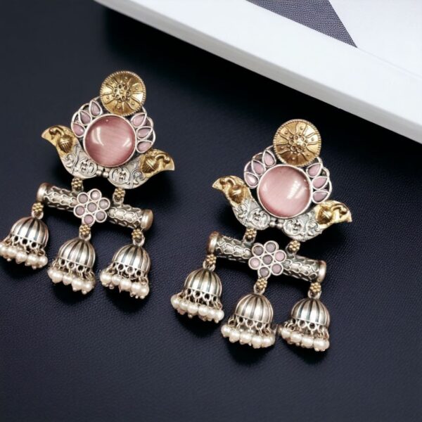 Designer Two-Tone Jhumka Earrings | Bird Design Pearl & Stone Work Beautiful Jewelry For Women