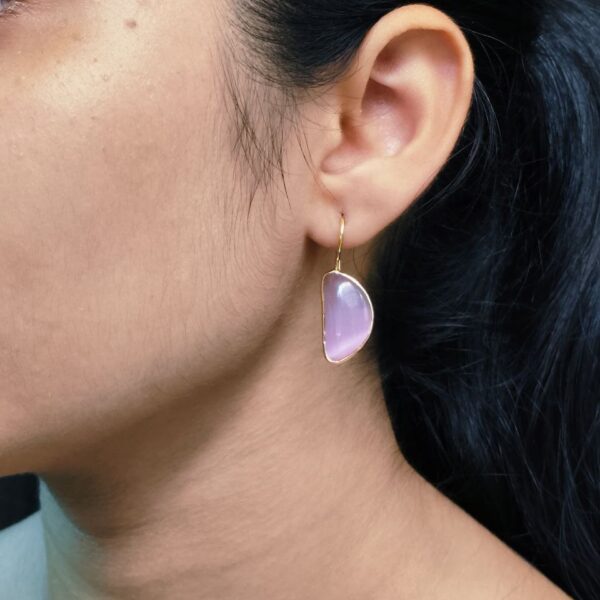 Designer Gold Plated Half Circle Earrings with Monalisa Stone | Best Hook Style Jewelry