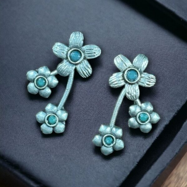 Elegant Floral Art Stud Earrings | Oxidized Silver Replica Daily Wear Amazing Jewelry