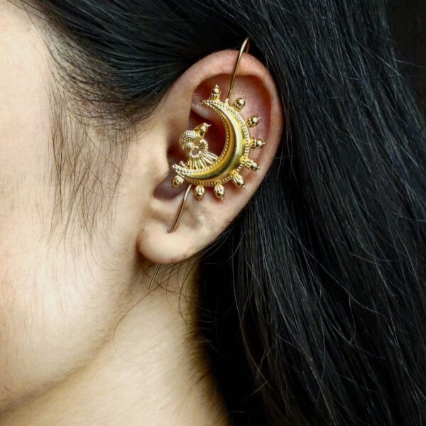 Ethnic Gold Plated Beautiful Peacock Earcuff | Half Moon Stylish Jewelry for Girls