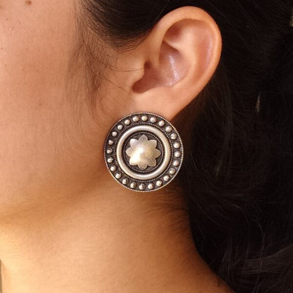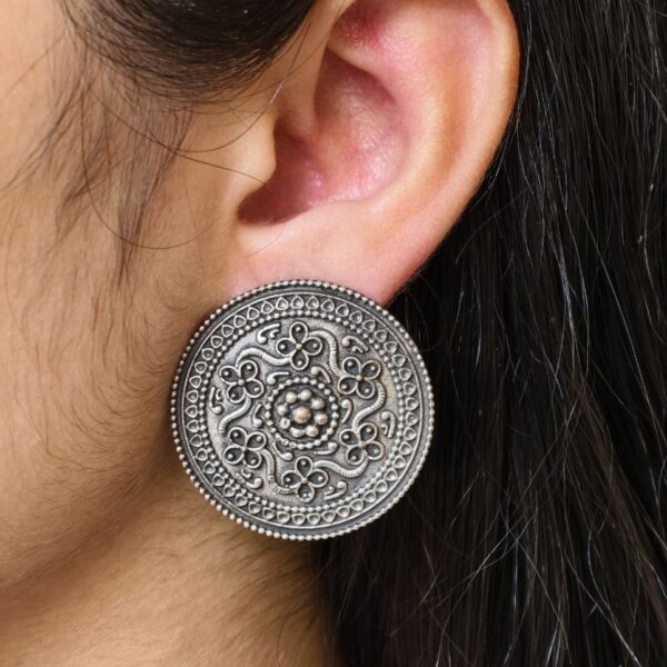 Elegant Round Oxidized Stud Earrings | Silver Replica Casual Wear Best Jewelry