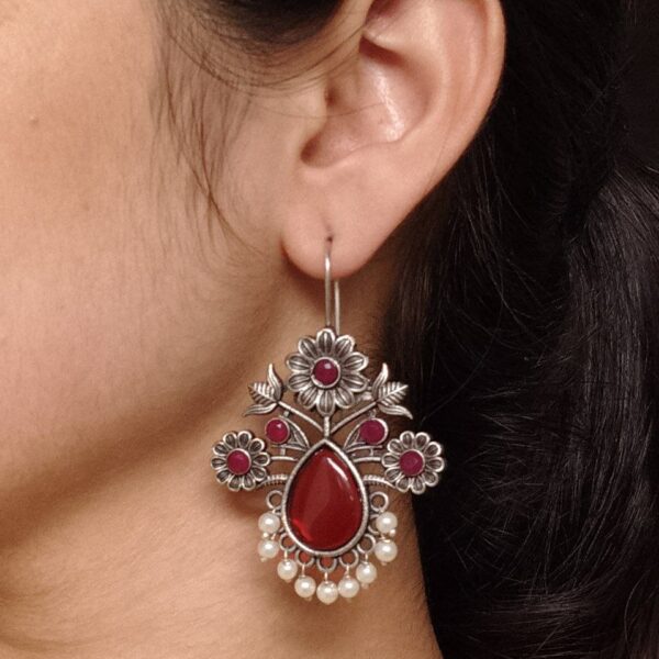 Elegant Flower Design Hook Earrings | Silver Replica Stone & Pearl Work Best Traditional Jewelry