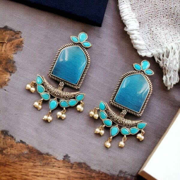 Fashionable Western Look Earrings | Unique Design Pearl & Monalisa Stone Jewelry for Women
