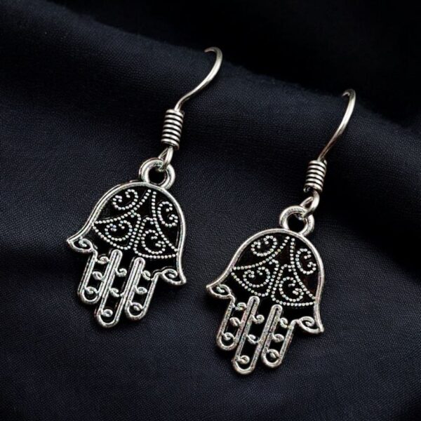 German Silver Buddha Hast Earrings | Unique Oxidized Hook Jewellery
