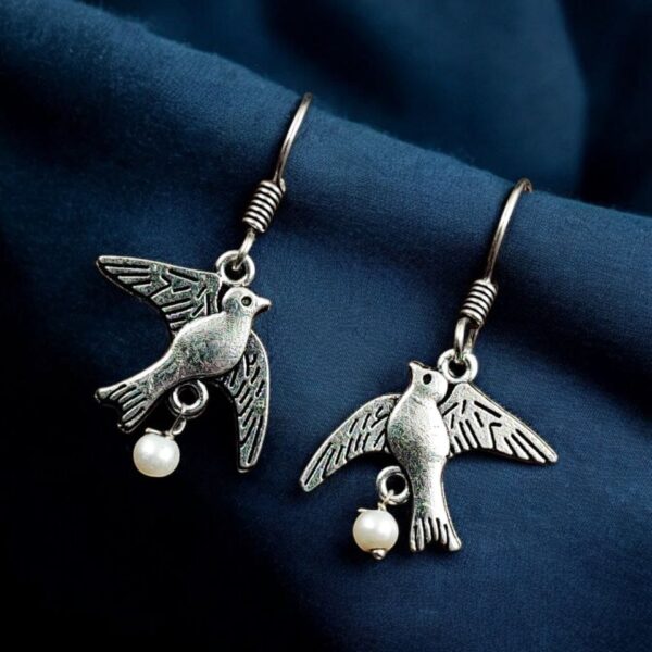 German Silver Bird Earring | Oxidised Hook Earring | Best Daily-wear Jewelry