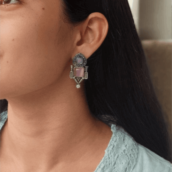 Ethnic Silver Plated Stud Earrings | Monalisa Stone Unique Design Oxidized Jewelry