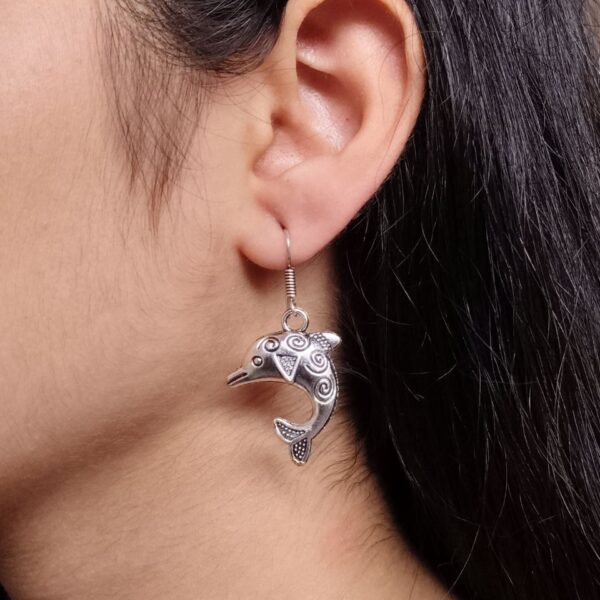 German Silver Dolphin Dangler Earrings | Hook Design Perfect for Daily Use