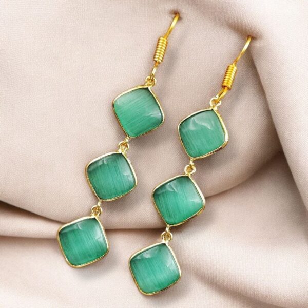 Gold-Plated Monalisa Stone Earrings | Premium Quality Best Stone Dangler Jewelry