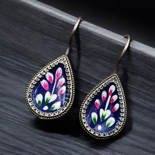 Hand-Painted Dangler Earrings ? Stunning Silver Replica Style