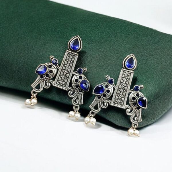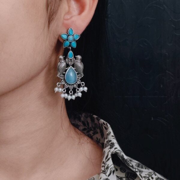 Handcrafted Ethnic Peacock Earrings | Silver Replica Stone Dangler Best Jewelry