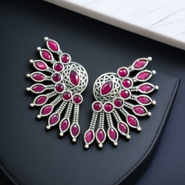 Handcrafted Ancient Feather Style Earrings | Silver Replica Wings Best Stone Work
