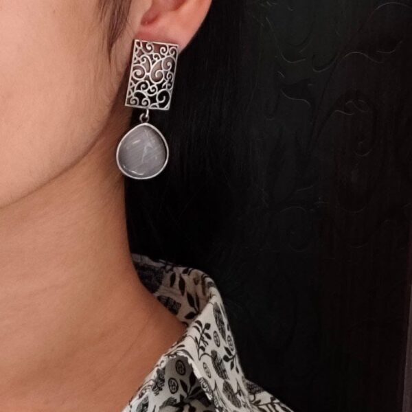 Handcrafted Floral Art Earrings | Amazing Monalisa Stone Dangler Oxidized Jewelry