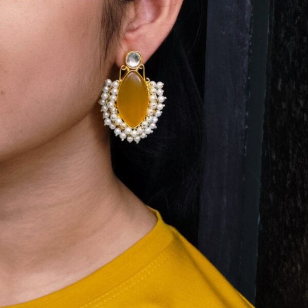 Handcraft Big Monalisa Stone Earrings with Pearl Detail ? Gold Plated Western Style