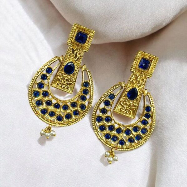 Gold Plated Western Look Earrings | Pearl & Stone Work Unique & Ethnic Jewelry For Women