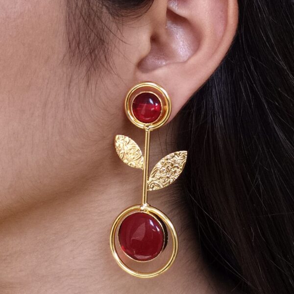 Gold Plated Western Look Earrings | Unique & Ethnic Floral Art with Monalisa Stone Leaf Design