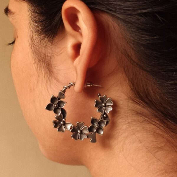 Handcrafted Floral Art Stud Earrings | Silver Replica Daily Wear Best Oxidized Jewelry Gift For Her