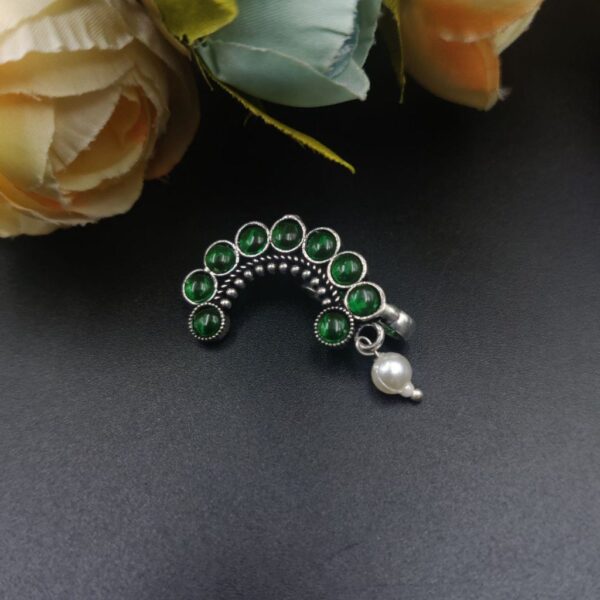 Adorable Oxidised Silver Plated Marathi Nath Press Nosepin