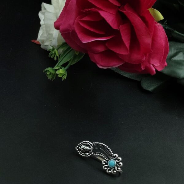 Marathi Nath | Unique Oxidised Silver Plated Press Nosepin For Girls
