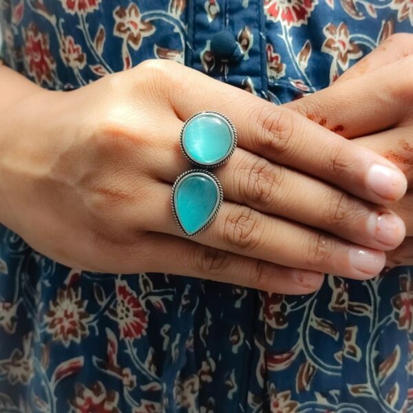 Handcrafted Stone Adjustable Ring | Best Oxidized Silver Replica Ethnic Wear