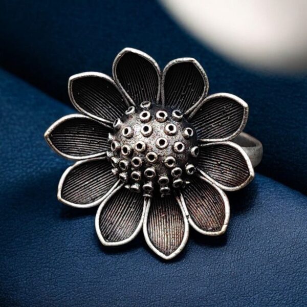 Oxidized Silver Replica Flower Design Ring | Adjustable Daily Wear Beautiful Jewelry