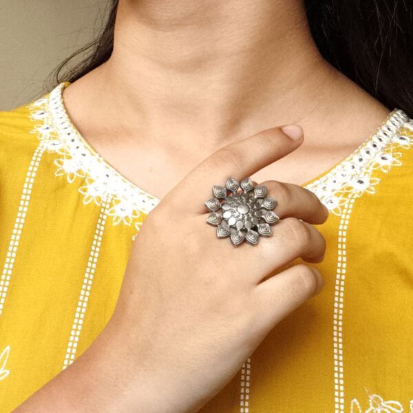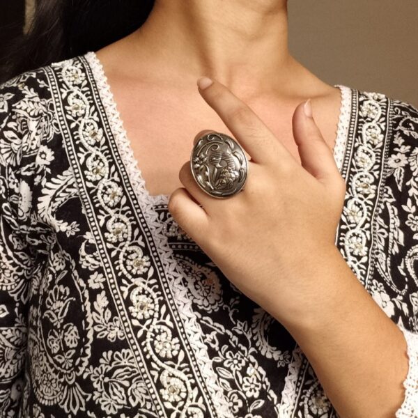 Handcrafted Shakti Ring | Oxidized Silver Plated Adjustable Best Designer Jewelry