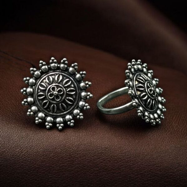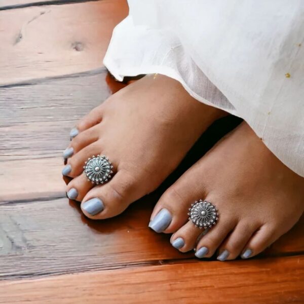 Traditional Flower Design Toe Ring | Oxidized Stone Work Best Jewelry