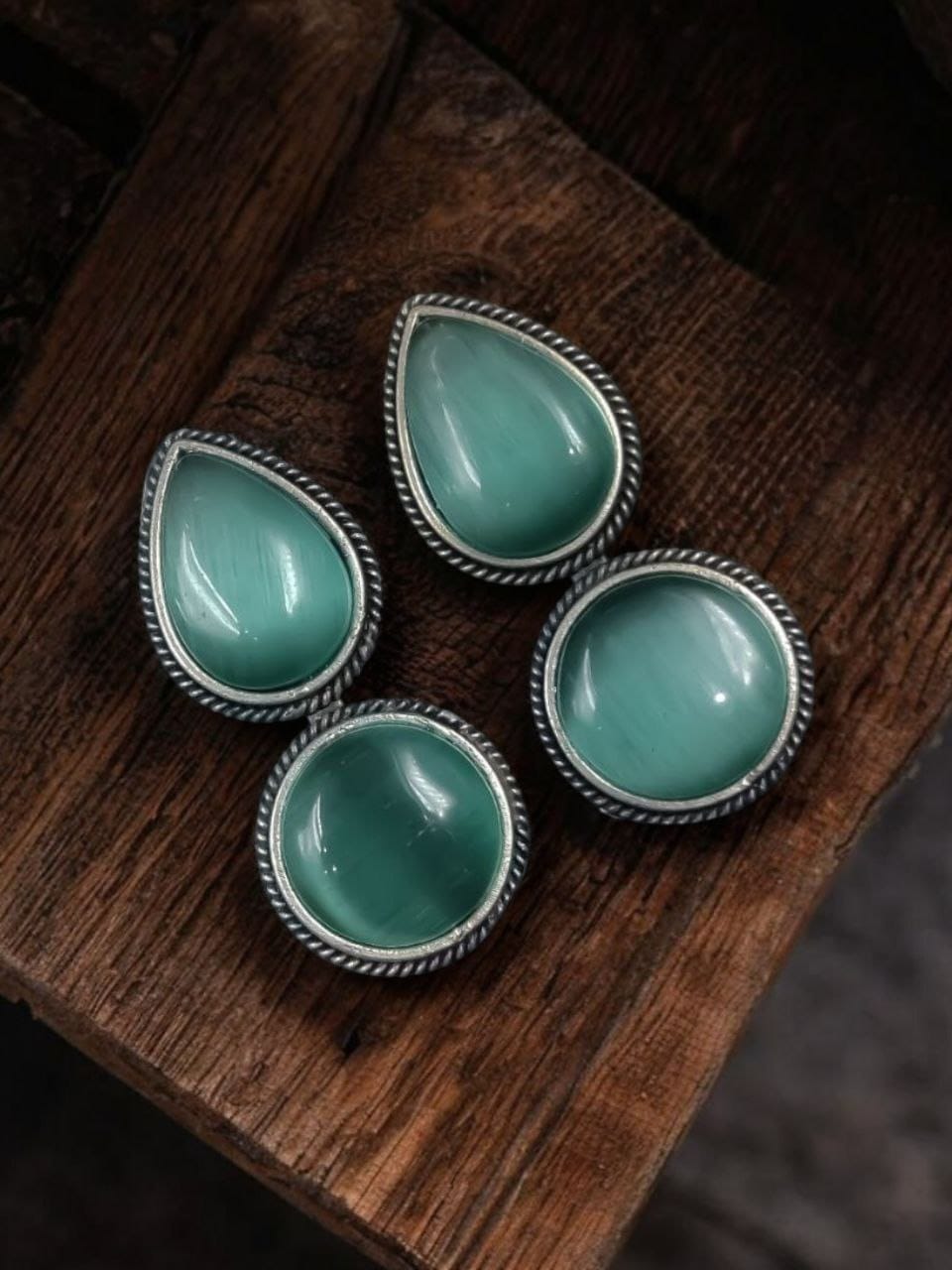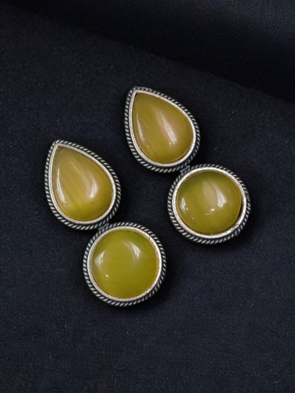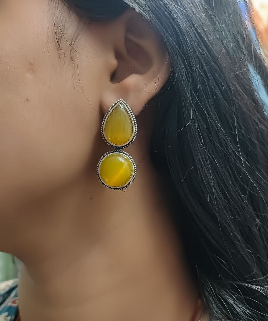With their irresistible charm and timeless appeal, our Dual Monalisa Stone Silver Look Like Earrings are the perfect accessory for girls who want to express their unique style. Whether worn as a statement piece or layered with other jewelry, these earrings are sure to make a lasting impression.