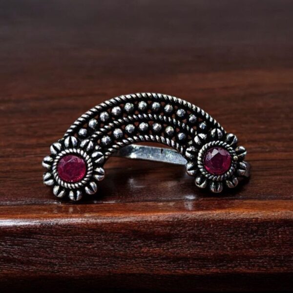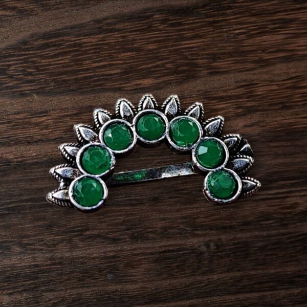 Embellished with intricate patterns, this Marathi Nath captures the cultural heritage of Maharashtra, making it the perfect accessory for weddings, festivals, and cultural celebrations. The oxidized silver plating not only adds a touch of vintage charm but also ensures durability and longevity.