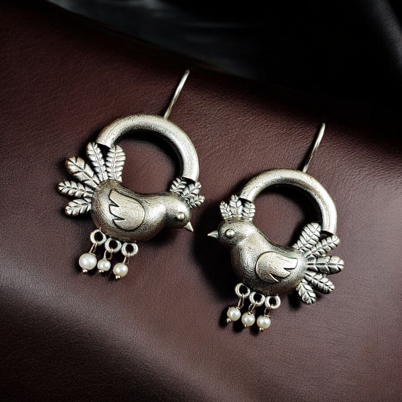 These earrings are more than just an accessory ? they?re a celebration of tradition and modernity. The charming bird design and oxidized silver finish make them a unique addition to your jewelry collection. Their timeless appeal ensures they?ll never go out of style.