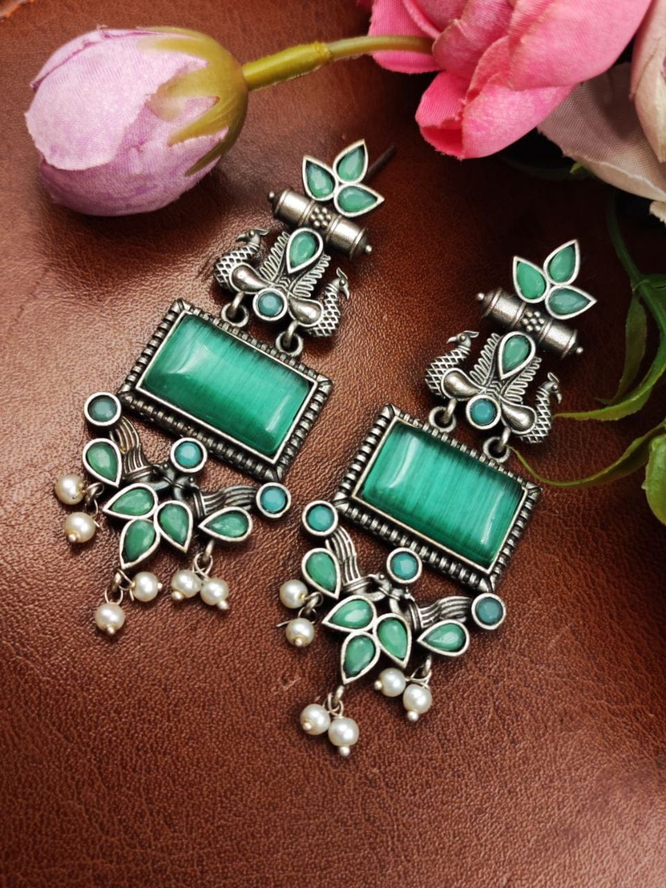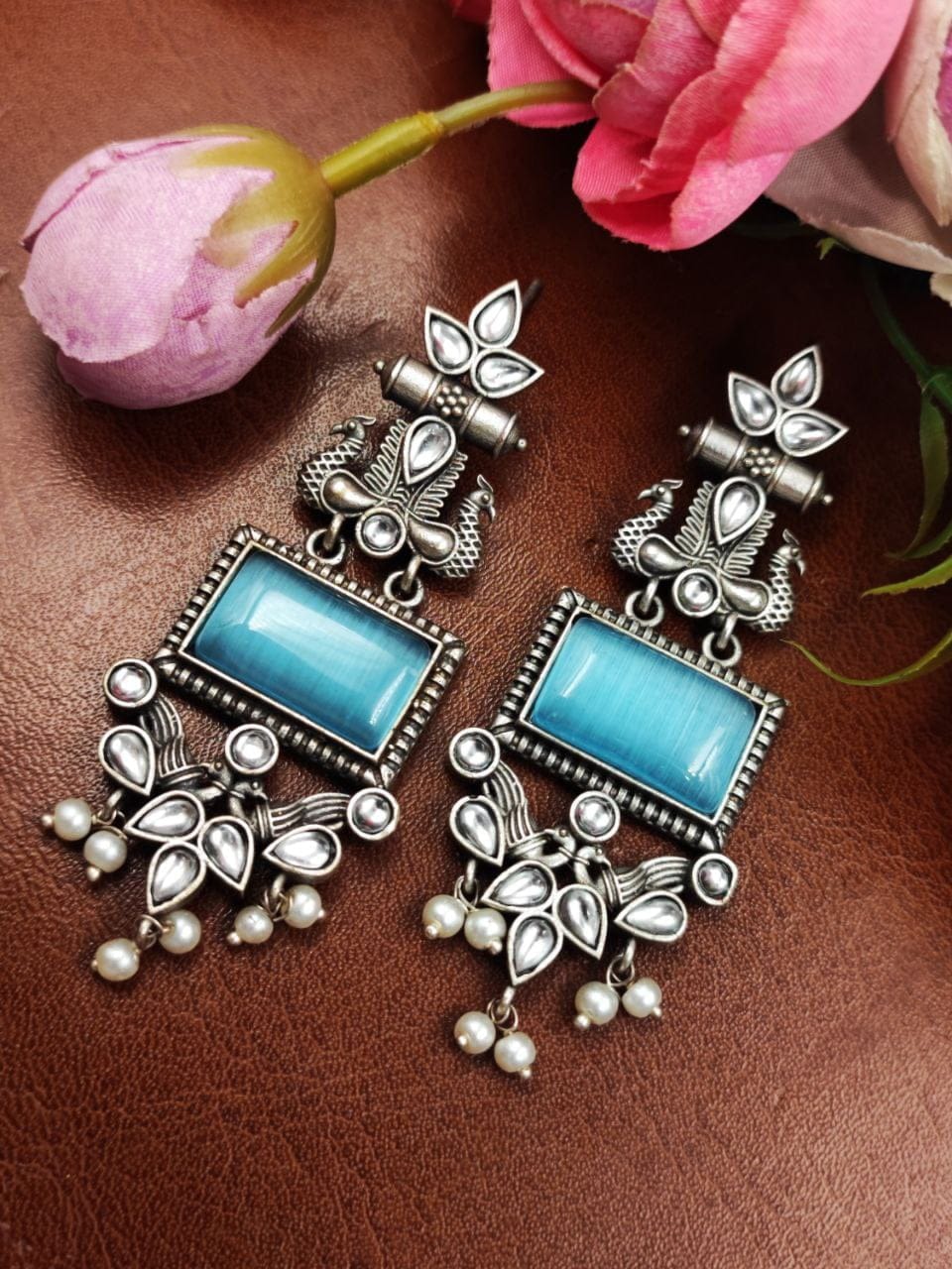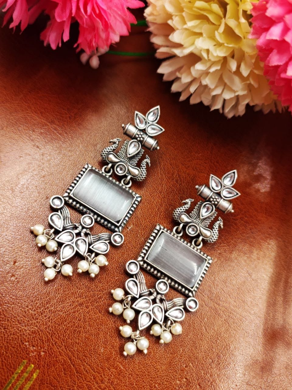 These earrings are a perfect choice for those who appreciate intricate designs, nature-inspired motifs, and the timeless beauty of pearls. With their combination of silver craftsmanship, peacock-inspired design, and delicate pearl accents, these earrings make a stunning addition to any jewelry collection.
