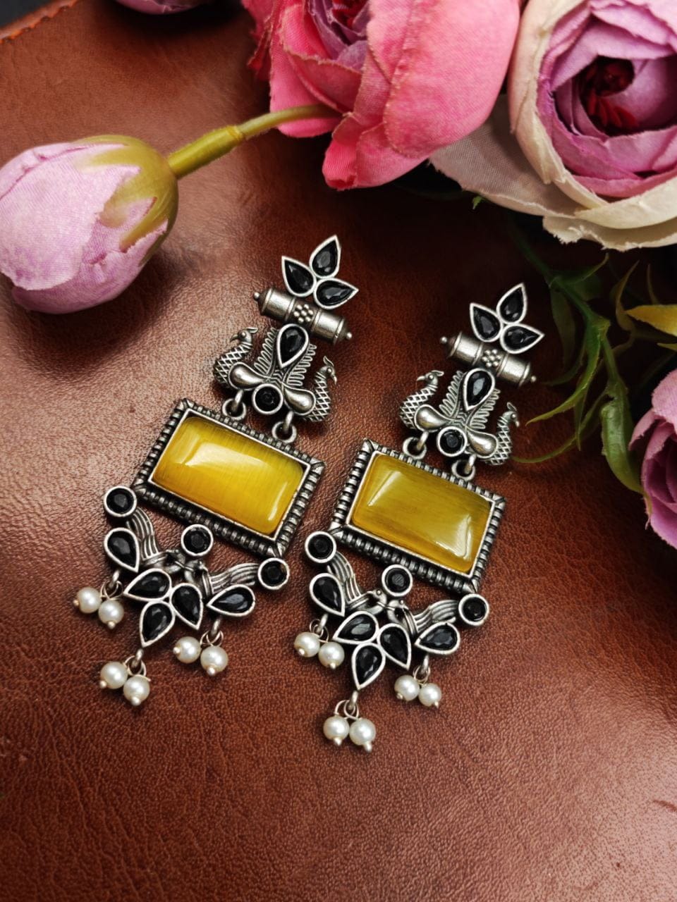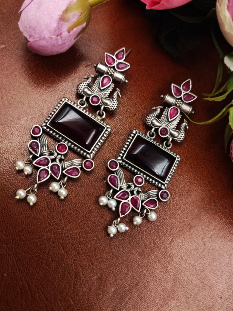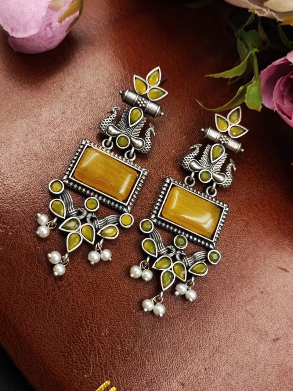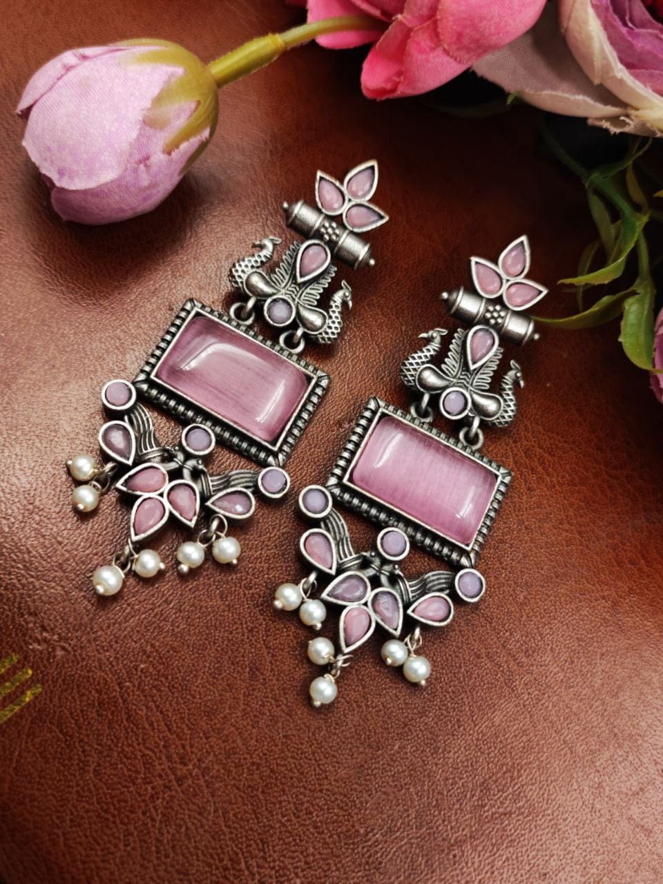 These earrings are a perfect choice for those who appreciate intricate designs, nature-inspired motifs, and the timeless beauty of pearls. With their combination of silver craftsmanship, peacock-inspired design, and delicate pearl accents, these earrings make a stunning addition to any jewelry collection.