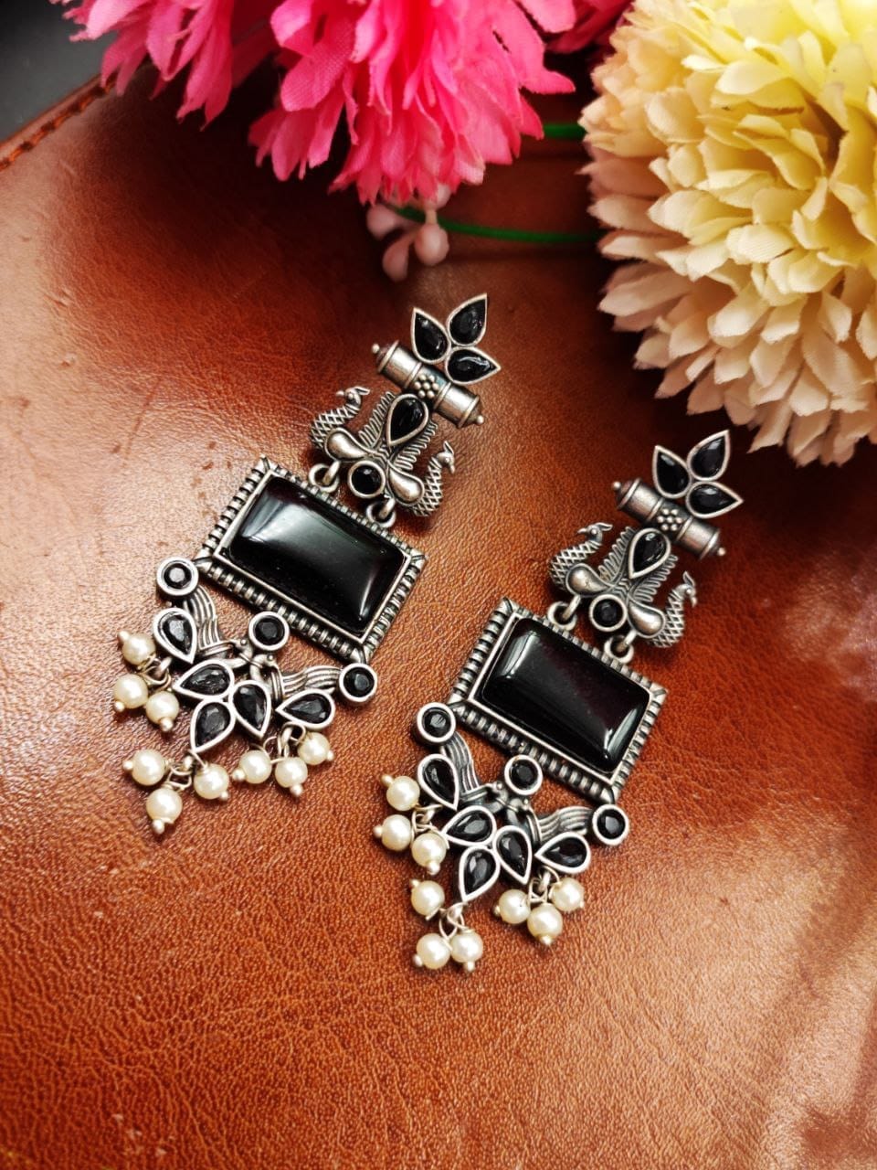Versatile and Eye-Catching: The Silver Replica Flower Design Dangler Peacock Earrings with Pearl Beads are versatile accessories that can complement a wide range of outfits and occasions. Whether you’re attending a formal event, a wedding, or simply want to add a touch of sophistication to your everyday look, these earrings are sure to catch your attention and garner compliments.