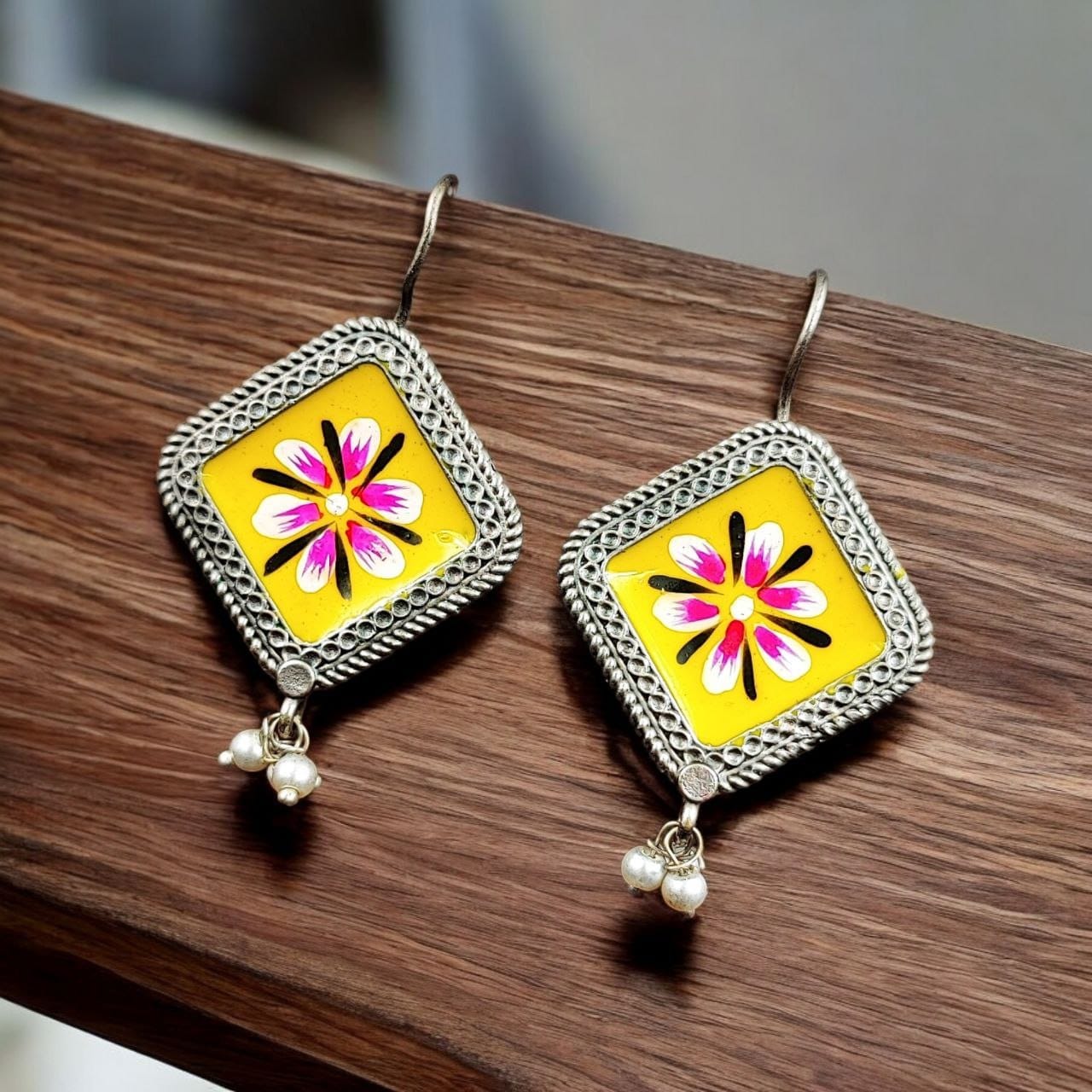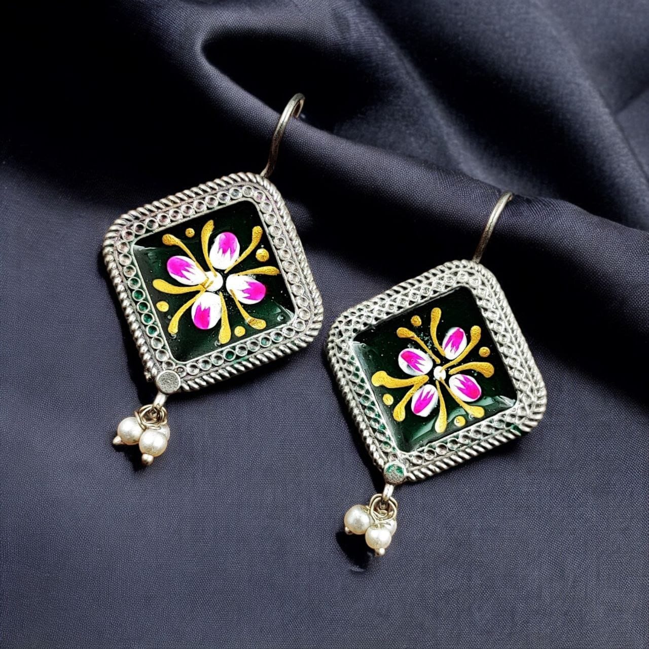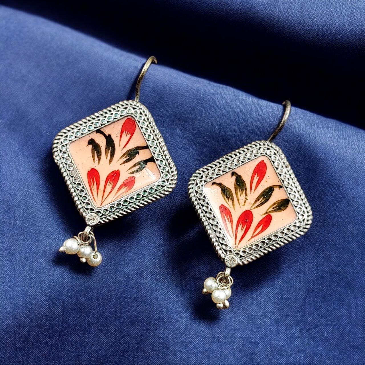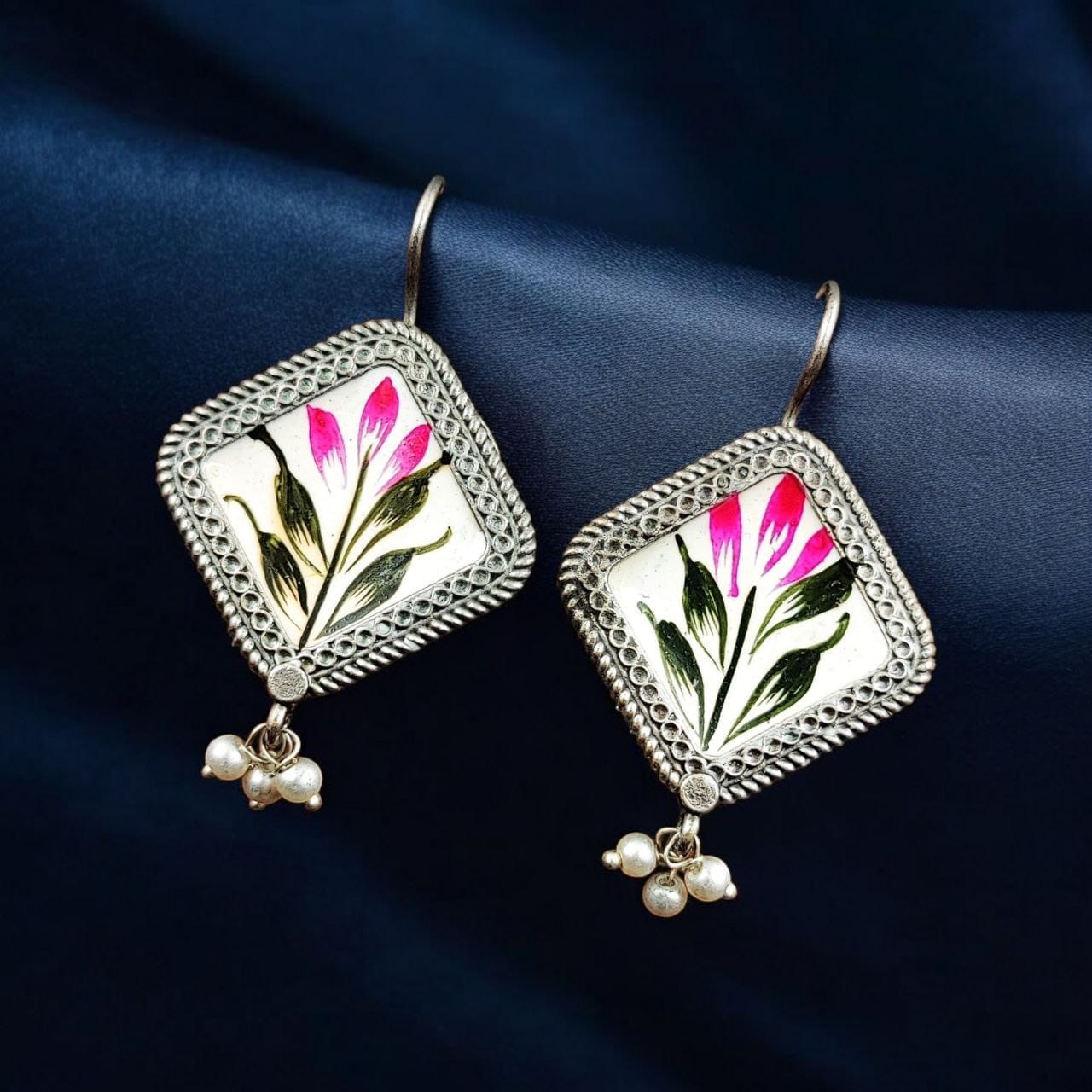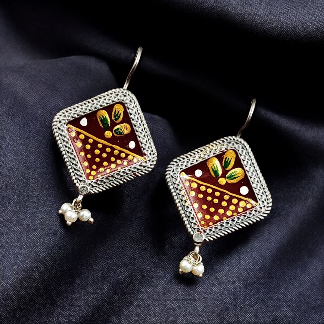 Embrace the charm of ethnic elegance with these Adorable Silver Replica Earrings for Girls, a perfect blend of traditional artistry and contemporary style. Designed for women who appreciate unique, handcrafted accessories, these earrings showcase a tribal-inspired look with intricate hand-painted details, making them a standout addition to your jewelry collection.